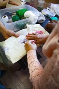 exemplo são as atividades formativas, como as oficinas de bordado e costura realizadas em