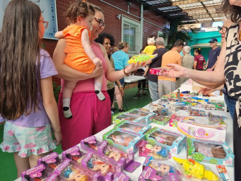 brinquedos e lanches que foram organizados com o apoio de voluntários da própria