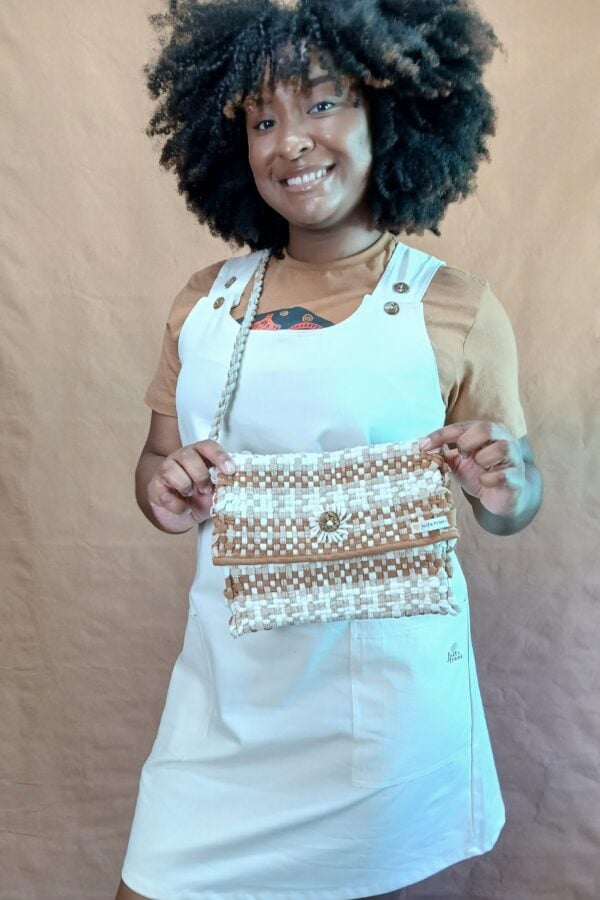 Esta bolsa artesanal da Justa Trama é tecida manualmente em tear com algodão agroecológico nas cores rubi e natural. Cada peça nasce da cadeia produtiva solidária do algodão agroecológico brasileiro, garantindo rastreabilidade, respeito ao meio ambiente e geração de renda justa para famílias agricultoras e trabalhadoras de diferentes regiões do país. O trançado combina tons naturais em um desenho clássico e contemporâneo, criando uma textura firme, harmoniosa e agradável ao toque. A bolsa possui fechamento em aba e alça em cordão trançado, proporcionando leveza, conforto e praticidade para o uso diário. Produzida com algodão cultivado sem agrotóxicos e sem transgênicos, essa peça reflete o compromisso da Justa Trama com sustentabilidade, economia solidária e consumo consciente.