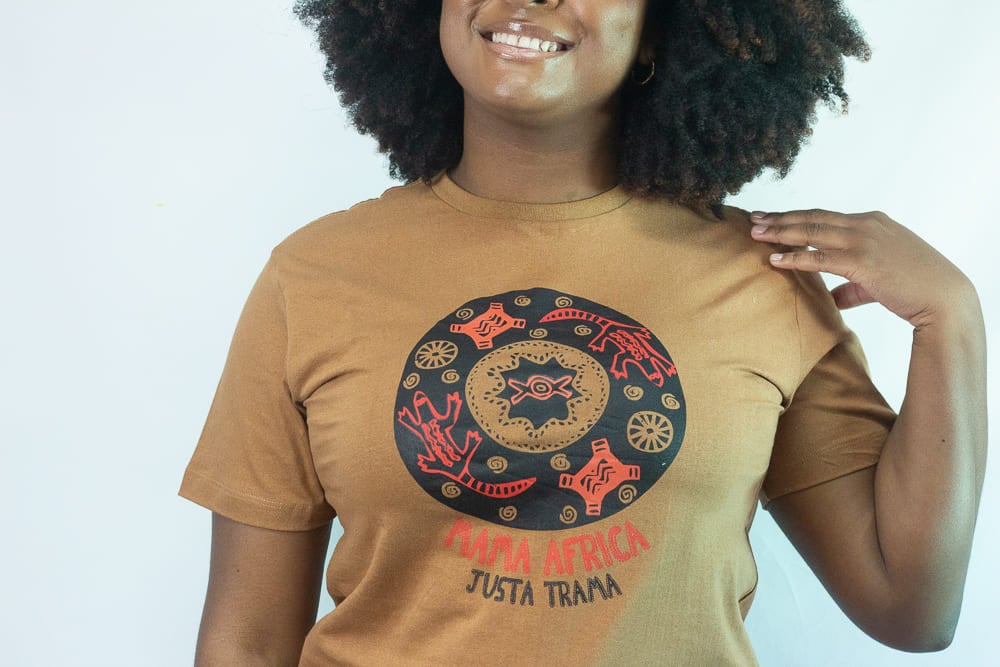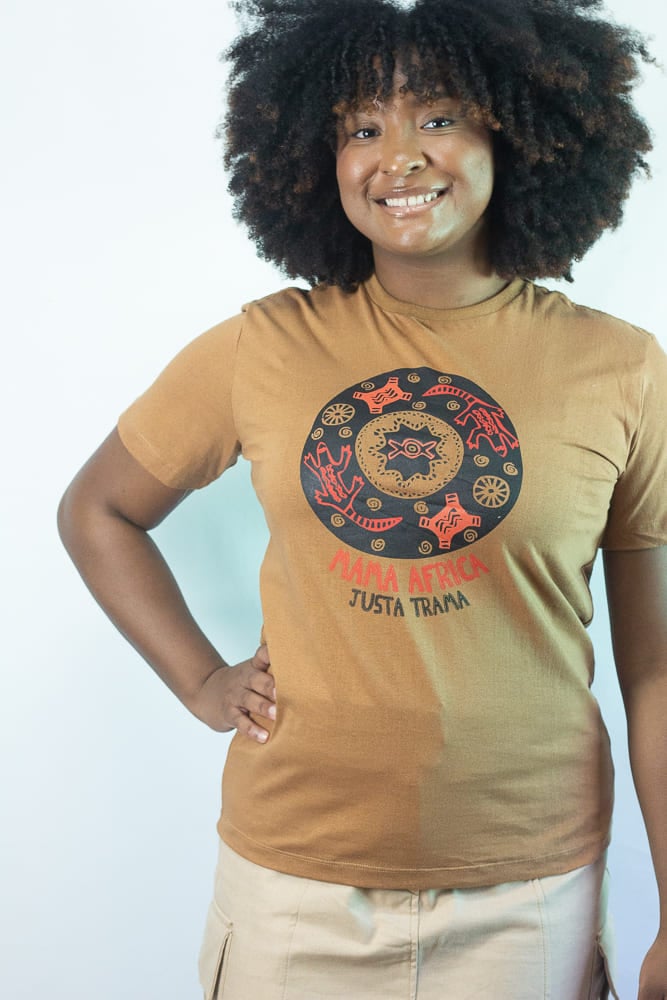 Feita em algodão agroecológico cultivado sem veneno e sem transgênicos, esta camiseta celebra as raízes e a força da ancestralidade africana. A estampa “Mama África” traz símbolos inspirados na arte e cultura do continente que é berço da humanidade, conectando moda, identidade e resistência.