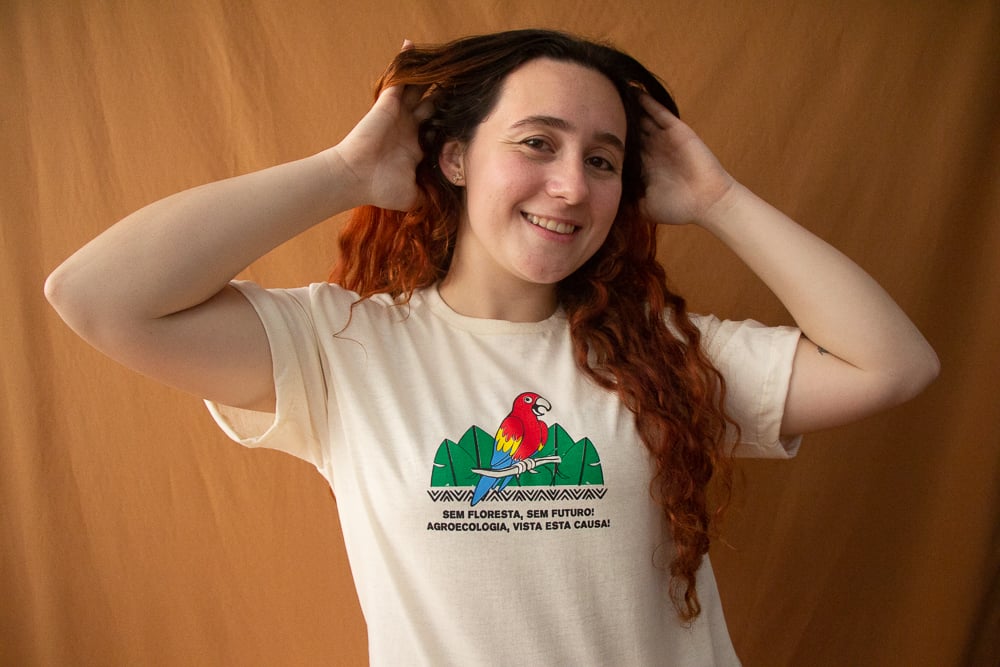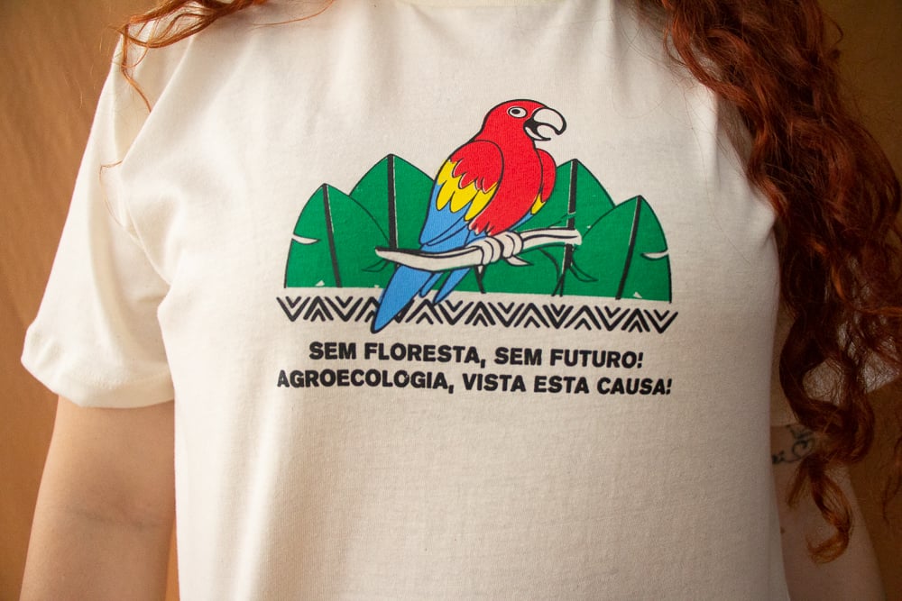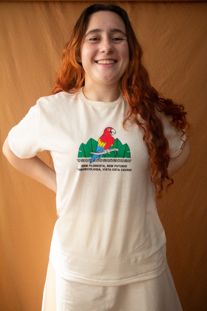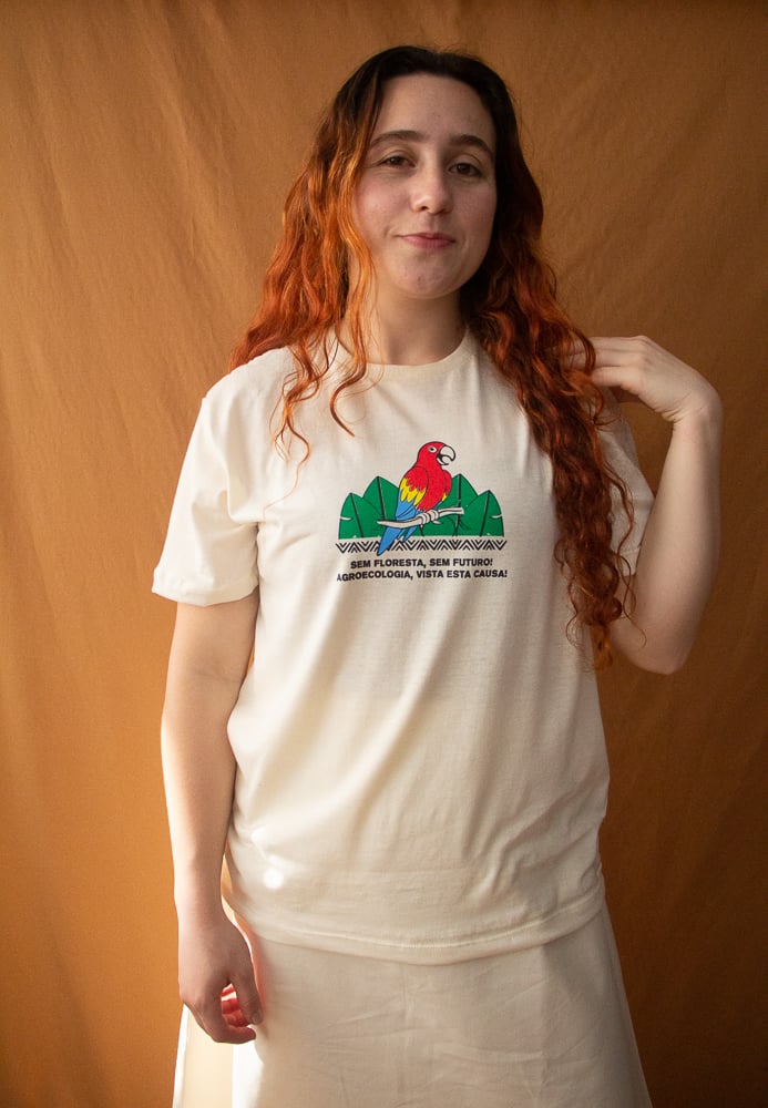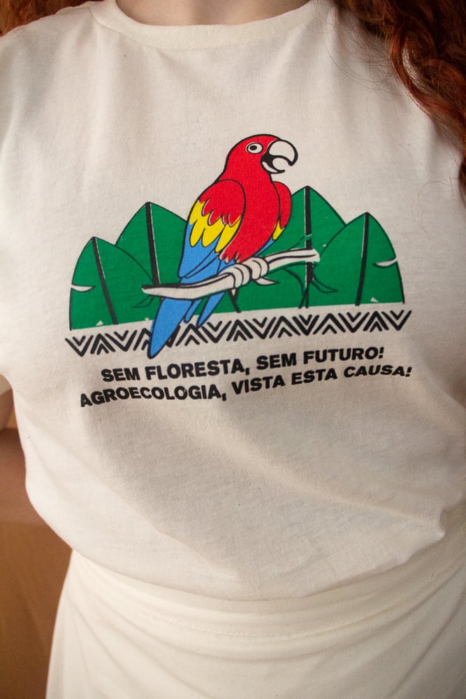 Feita em algodão agroecológico cultivado sem veneno e sem transgênicos, esta camiseta é um grito de guerra para todos os ativistas e pessoas preocupadas na luta pelas nossas florestas. A estampa “Sem floresta, sem futuro!” criada e lançada especialmente para a COP 30 em Belém do Pará Chama atenção para essa luta que é de todos nós.