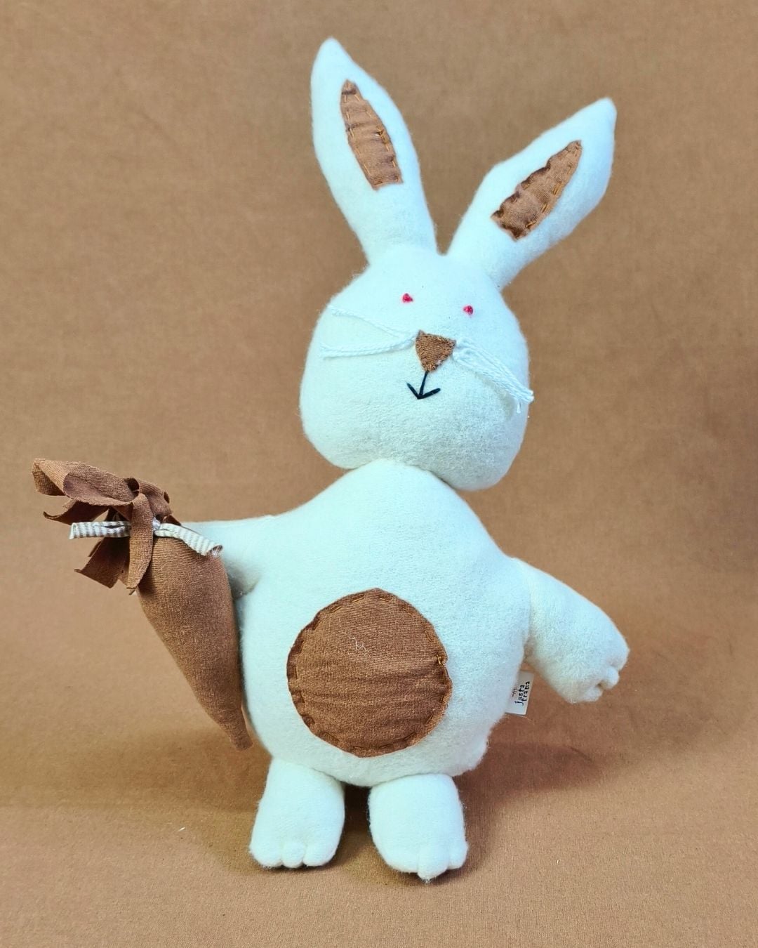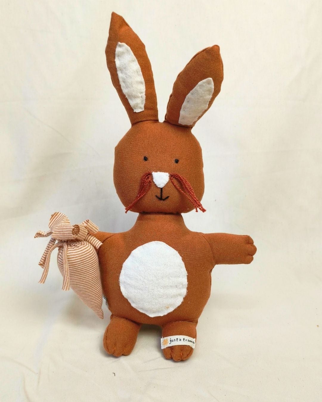 A Coelho Cenourinha da Justa Trama é confeccionada artesanalmente com algodão agroecológico. Seu design lúdico e minimalista combina o branco natural do algodão com detalhes em tom terroso, criando uma peça acolhedora, charmosa e cheia de identidade. Feita em tecido macio e hipoalérgico, é perfeita para decorar ambientes infantis, trazer aconchego ao lar ou presentear alguém com um produto cheio de propósito. Cada peça carrega o cuidado manual dos artesãos e o compromisso da Justa Trama com a sustentabilidade, a economia solidária e o comércio justo.