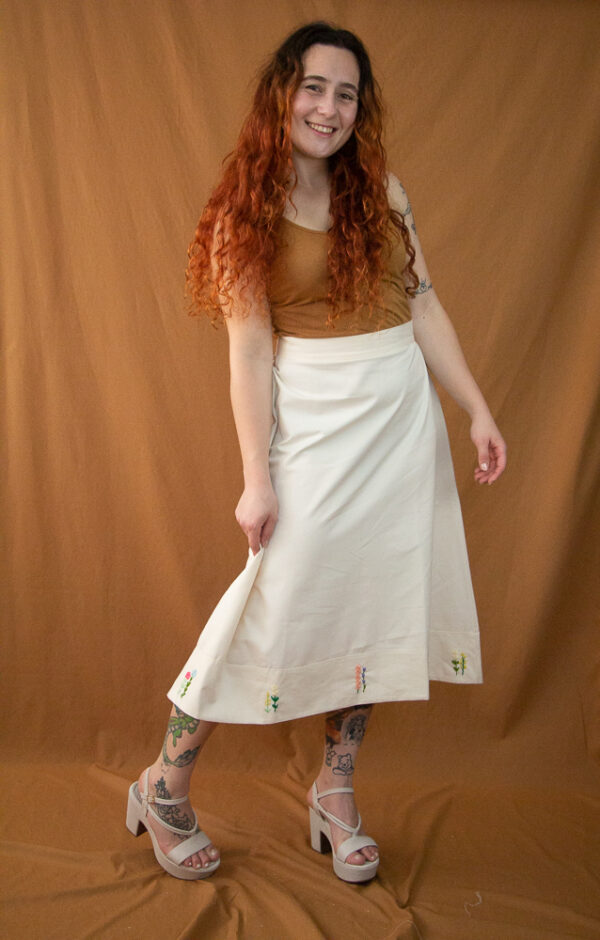 Confeccionada em algodão agroecológico, na cor natural do fio, e bordada à mão pelo nosso grupo de bordadeiras, a Saia Primavera traduz a delicadeza e a força de quem planta, cria e transforma. 🌿